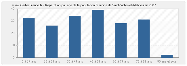 - Femmes de 45 à 59 ans habitant Saint-Victor-et-Melvieu : 39