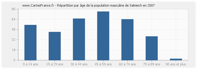 - Hommes de 45 à 59 ans habitant Salmiech : 76