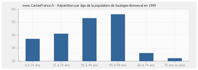 - Population de Soulages-Bonneval de 45 à 59 ans : 56 habitants