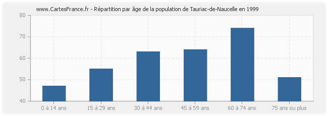 - Population de Tauriac-de-Naucelle de 60 à 74 ans : 74 habitants