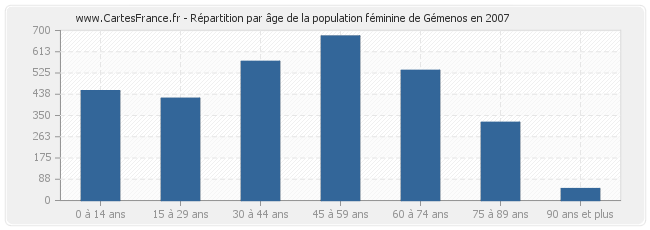 - Femmes de 45 à 59 ans habitant Gémenos : 677