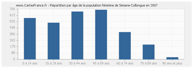 - Femmes de 45 à 59 ans habitant Simiane-Collongue : 686