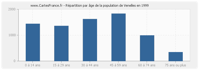 - Population de Venelles de 45 à 59 ans : 1 827 habitants