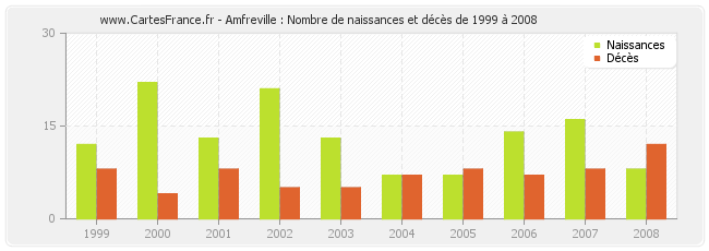 - Amfreville en 2008 : 8 naissances et 12 décès