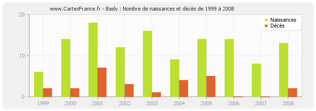 - Basly en 2008 : 13 naissances et 2 décès