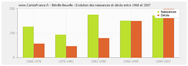 Biéville-Beuville : évolution des naissances et décès de 1968 à 2007