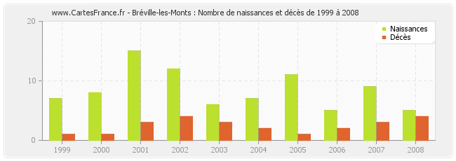 Bréville-les-Monts : naissances et décès de 1999 à 2008