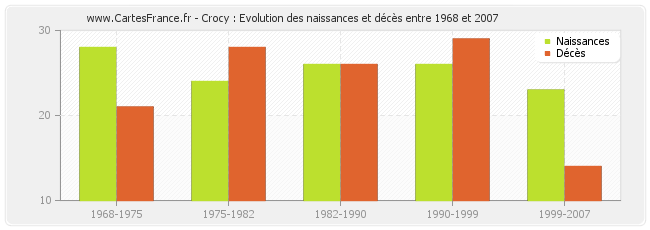 Crocy : évolution des naissances et décès de 1968 à 2007