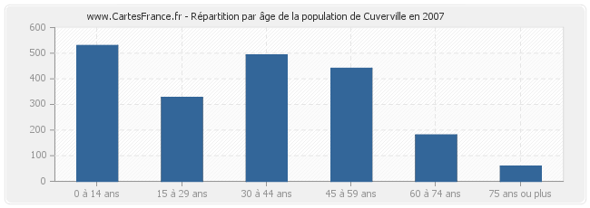 - Population de Cuverville de 45 à 59 ans : 441 habitants