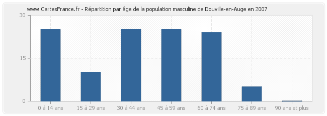 - Hommes de 0 à 14 ans habitant Douville-en-Auge : 25