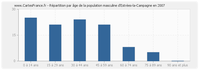 Répartition de la population masculine d'Estrées-la-Campagne par âge en 2007 :