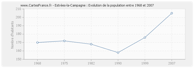 La population d'Estrées-la-Campagne était de 205 habitants en 2007, 176 habitants en 1999, 158 habitants en 1990, 168 habitants en 1982, 172 habitants en 1975 et 170 habitants en 1968.