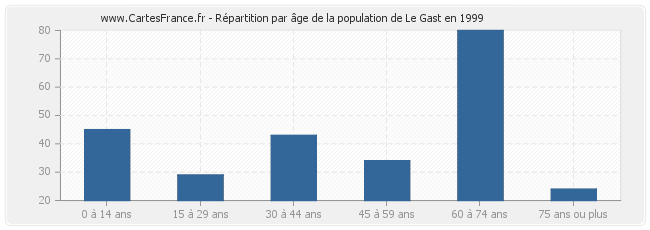 - Population de Le Gast de 45 à 59 ans : 34 habitants