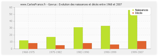 Gavrus : évolution des naissances et décès de 1968 à 2007