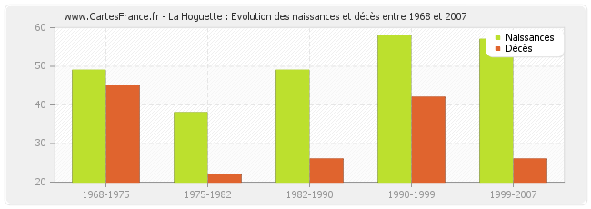 La Hoguette : évolution des naissances et décès de 1968 à 2007