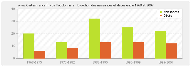 La Houblonnière : évolution des naissances et décès de 1968 à 2007