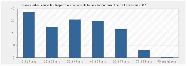 - Hommes de 0 à 14 ans habitant Lisores : 37