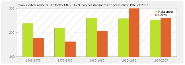 Le Molay-Littry : évolution des naissances et décès de 1968 à 2007