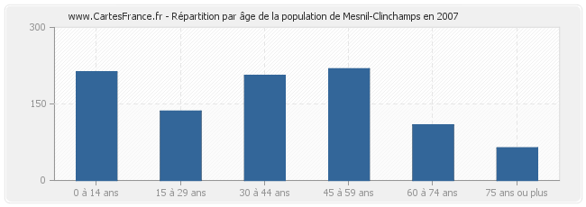 - Population de Mesnil-Clinchamps de 30 à 44 ans : 209 habitants