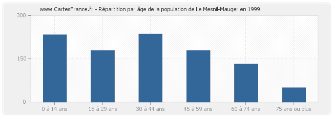 Répartition de la population de Le Mesnil-Mauger par âge en 1999 :