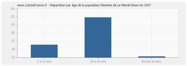 Répartition de la population féminine de Le Mesnil-Simon par âge en 2007 :