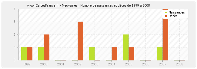 - Meuvaines en 1999 : 1 naissances et 1 décès