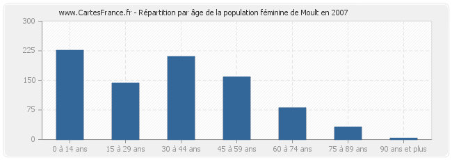 - Femmes de 0 à 14 ans habitant Moult : 226