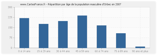 - Hommes de 45 à 59 ans habitant Orbec : 238