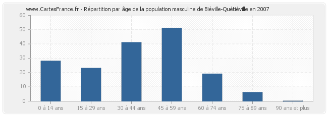 - Hommes de 45 à 59 ans habitant Biéville-Quétiéville : 51