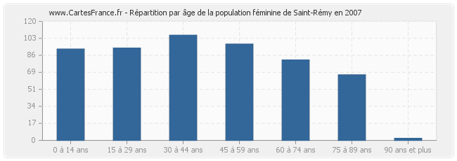 Répartition de la population féminine de Saint-Rémy par âge en 2007 :