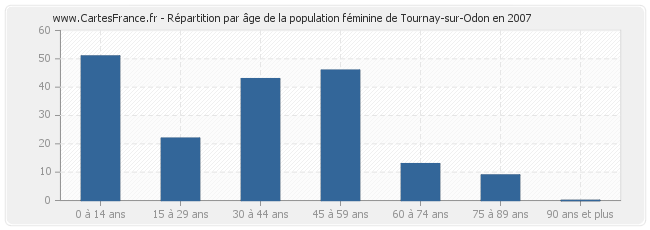 Répartition de la population féminine de Tournay-sur-Odon par âge en 2007 :