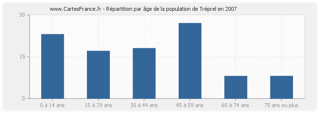 - Population de Tréprel de 45 à 59 ans : 27 habitants
