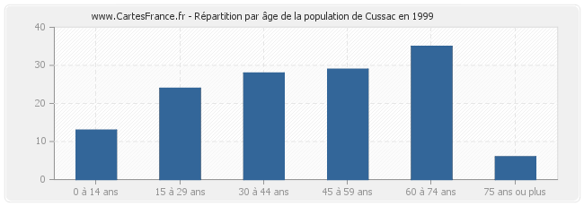 - Population de Cussac de 60 à 74 ans : 35 habitants