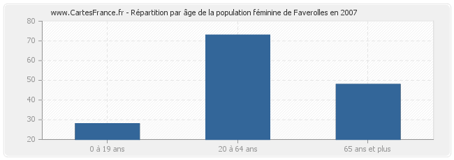 - Femmes de 20 à 64 ans habitant Faverolles : 73
