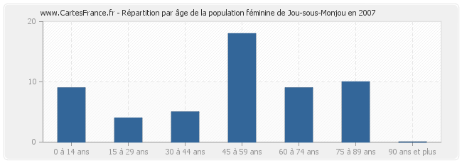 - Femmes de 45 à 59 ans habitant Jou-sous-Monjou : 18