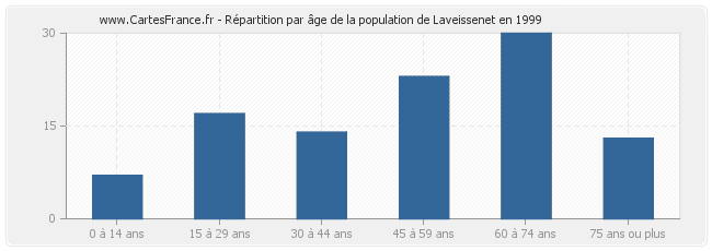 - Population de Laveissenet de 60 à 74 ans : 30 habitants