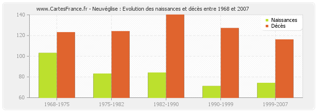 Neuvéglise : évolution des naissances et décès de 1968 à 2007