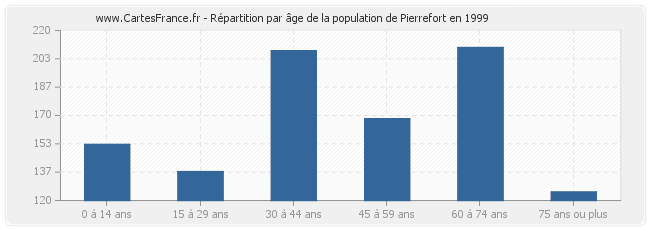 - Population de Pierrefort de 60 à 74 ans : 210 habitants