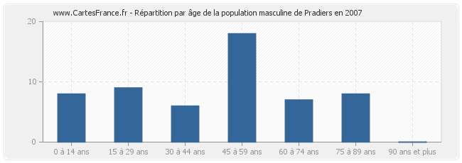 Répartition de la population masculine de Pradiers par âge en 2007 :