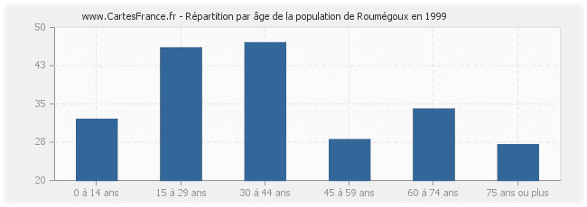 - Population de Roumégoux de 30 à 44 ans : 47 habitants