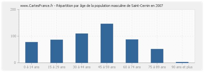Répartition de la population masculine de Saint-Cernin par âge en 2007 :