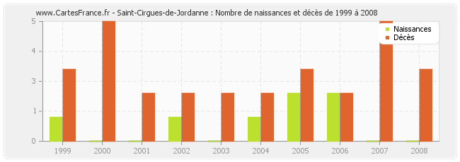 Saint-Cirgues-de-Jordanne : naissances et décès de 1999 à 2008