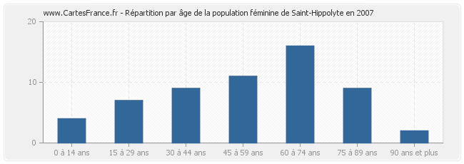 Répartition de la population féminine de Saint-Hippolyte par âge en 2007 :