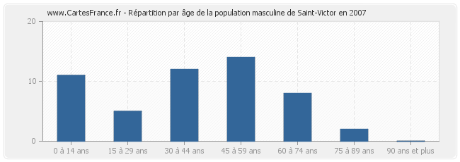 Répartition de la population masculine de Saint-Victor par âge en 2007 :