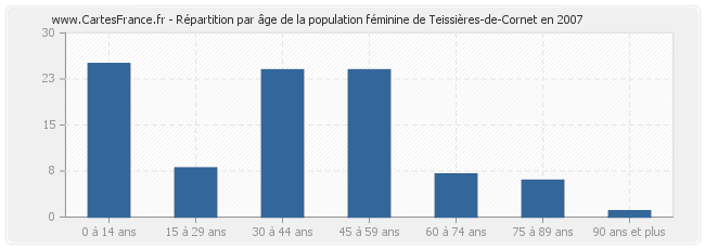Répartition de la population féminine de Teissières-de-Cornet par âge en 2007 :