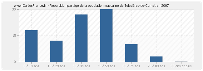 Répartition de la population masculine de Teissières-de-Cornet par âge en 2007 :