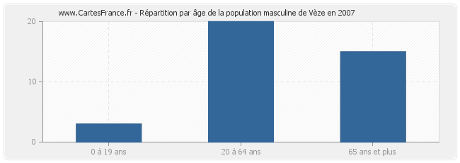 - Hommes de 20 à 64 ans habitant Vèze : 20