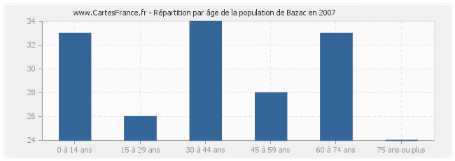 - Population de Bazac de 30 à 44 ans : 34 habitants