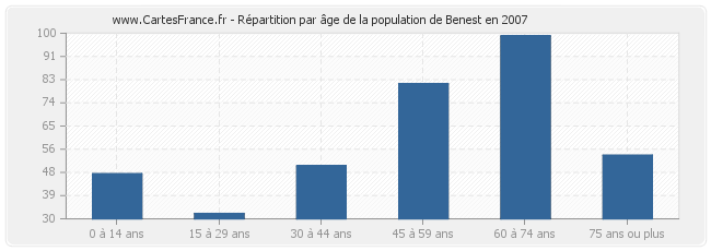 - Population de Benest de 60 à 74 ans : 99 habitants