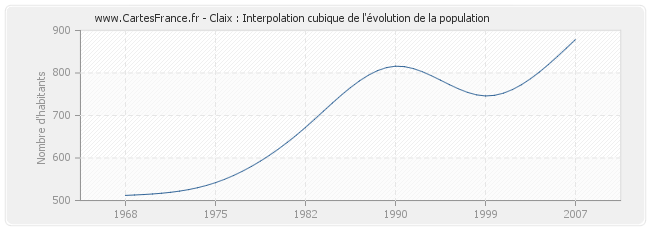 Cette courbe reprend l'historique de la population de Claix de 1968 à 2007 en interpolation cubique. Ceci permet d'obtenir plus précisément la population de la commune de Claix les années ou aucun recensement n'a été effectué.